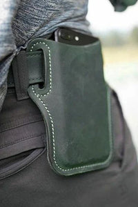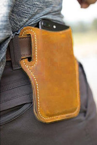 A handmade iPhone leather holster. [Designed to fit a 1/2"-1.5'' wide belt. ]