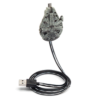 This Millennium Falcon Micro-USB Charging Cable will charge all of your devices. The blue/silver/green/red strip on the cord animates when charging.
