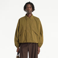 A modern interpretation of a classic blouson silhouette, crafted from heavyweight cotton for a structured yet comfortable fit. The design features a sharp point collar and oversized flap pockets, adding a functional edge to the clean, minimal lines. Elasticated cuffs and hemline create a gathered shape, while matte press-stud fastenings maintain a refined, utilitarian finish. Ideal for transitional layering or as a statement outer layer.
