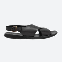A cross-strapped sandal with an adjustable buckle strap at the back, made from an elegant texturized leather.