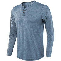 Men's Long Sleeve Crewneck Henley Shirt - Blue - S