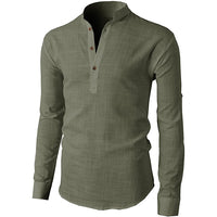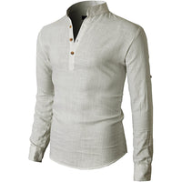 A classic linen shirt for men features buttons in front and is made from lightweight linen to stay cool during summer. Wear sleeves down or roll them up for a more casual daytime look.