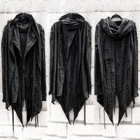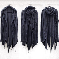 One of a kind handcrafted long black asymmetric hoodie. Unisex.