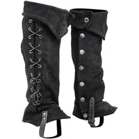 These spats are made from durable brown duck cloth to ensure a long life of comfort and style. They measure 17 inches long, 19 inches at the widest part of the calf, 16.5 inches at the ankle and are worn from below the knee to the ankle. They are a size large and meant to be worn with pants to keep them tight. Secures to your boot with a strap and buckle.
