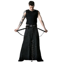 Crafted from high-quality materials, the Men Gothic Long Skirt features a dramatic longcut that enhances its maxi kilt design. The skirt's sleek, dark finish highlights its gothic influences,while the punk rock elements add a rebellious touch.