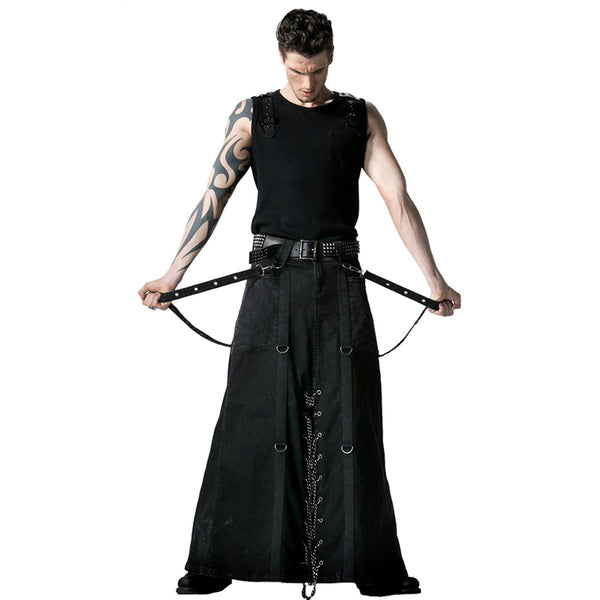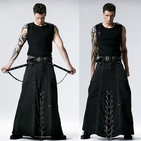 Elevate your alternative wardrobe with the Men Gothic Long Skirt - amaxi kilt that embodies the essence of gothic fashion and punk rock style.