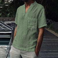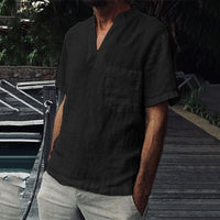 ++ Cut from pure washed Spanish linen, this loose-fitting, lightweight shirt is ideal for escapes to locales with hot climates.