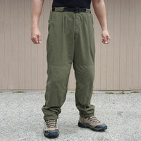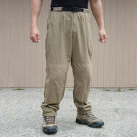 Zipper fly - A Delrin-tooth YKK zipper fly for convenient donning/doffing and a military-style taped tan button waist closure.