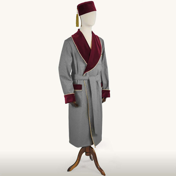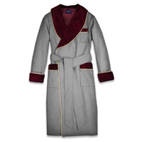 A subtle woven medallion pattern adds an extra layer of sophistication—appearing as a soft gray mélange from a distance, yet revealing its intricate details up close. Fully lined in pure cotton satin, this robe ensures warmth and comfort, making it a pleasure to wear. The long waist-tie allows for an effortlessly secure fit, while the medium-weight construction strikes the perfect balance, offering year-round comfort that’s neither too light nor too heavy.